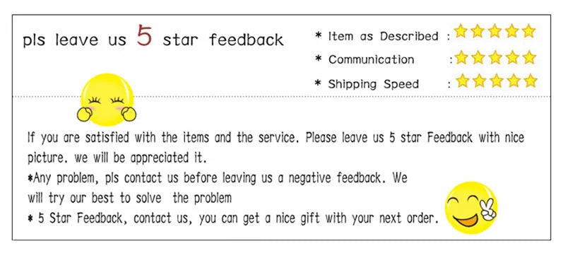 If you don’t receive your parcel,or it is damaged,or receive defective products, pls contact us and provide some photos as evidence to let us check,